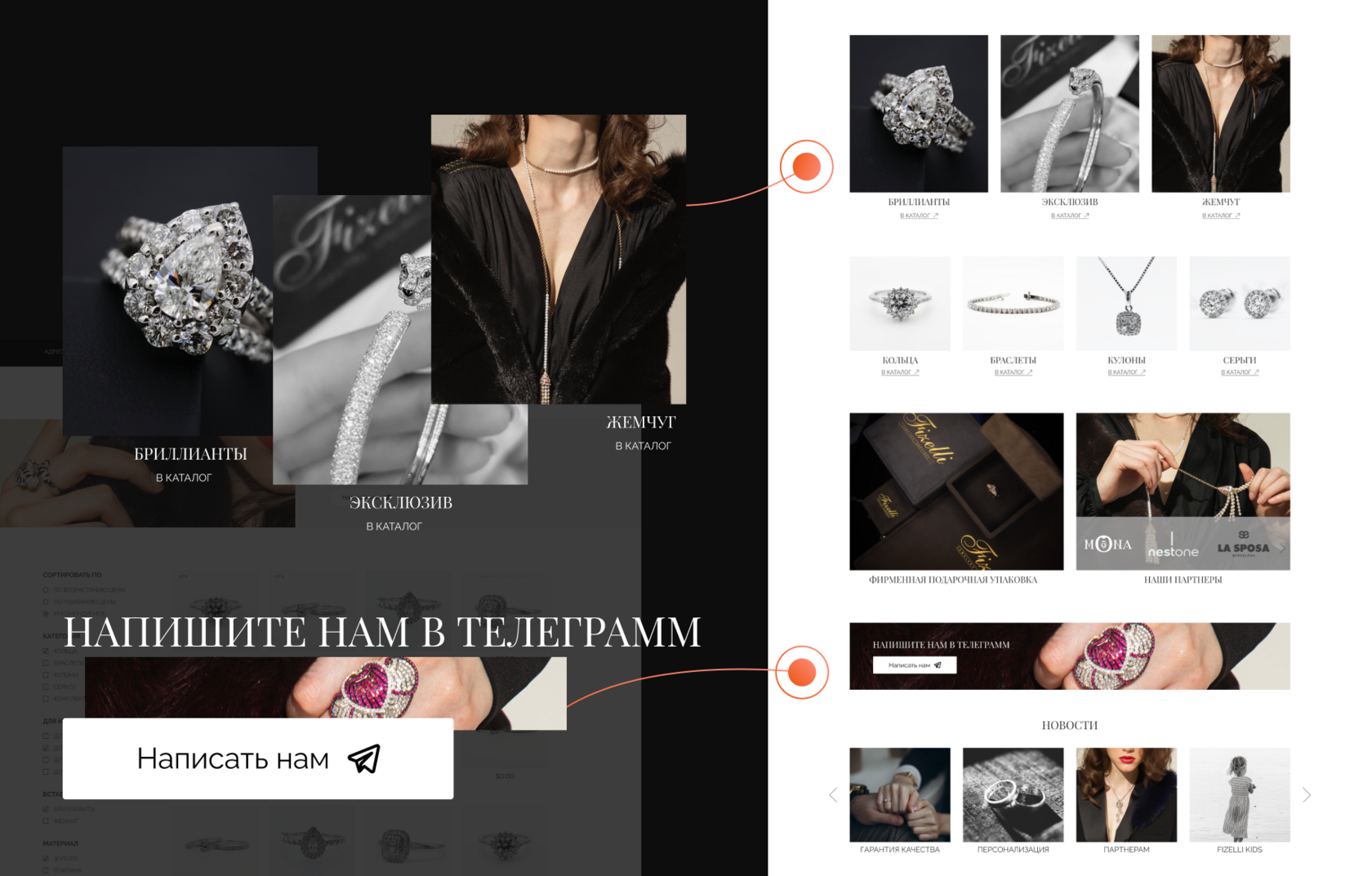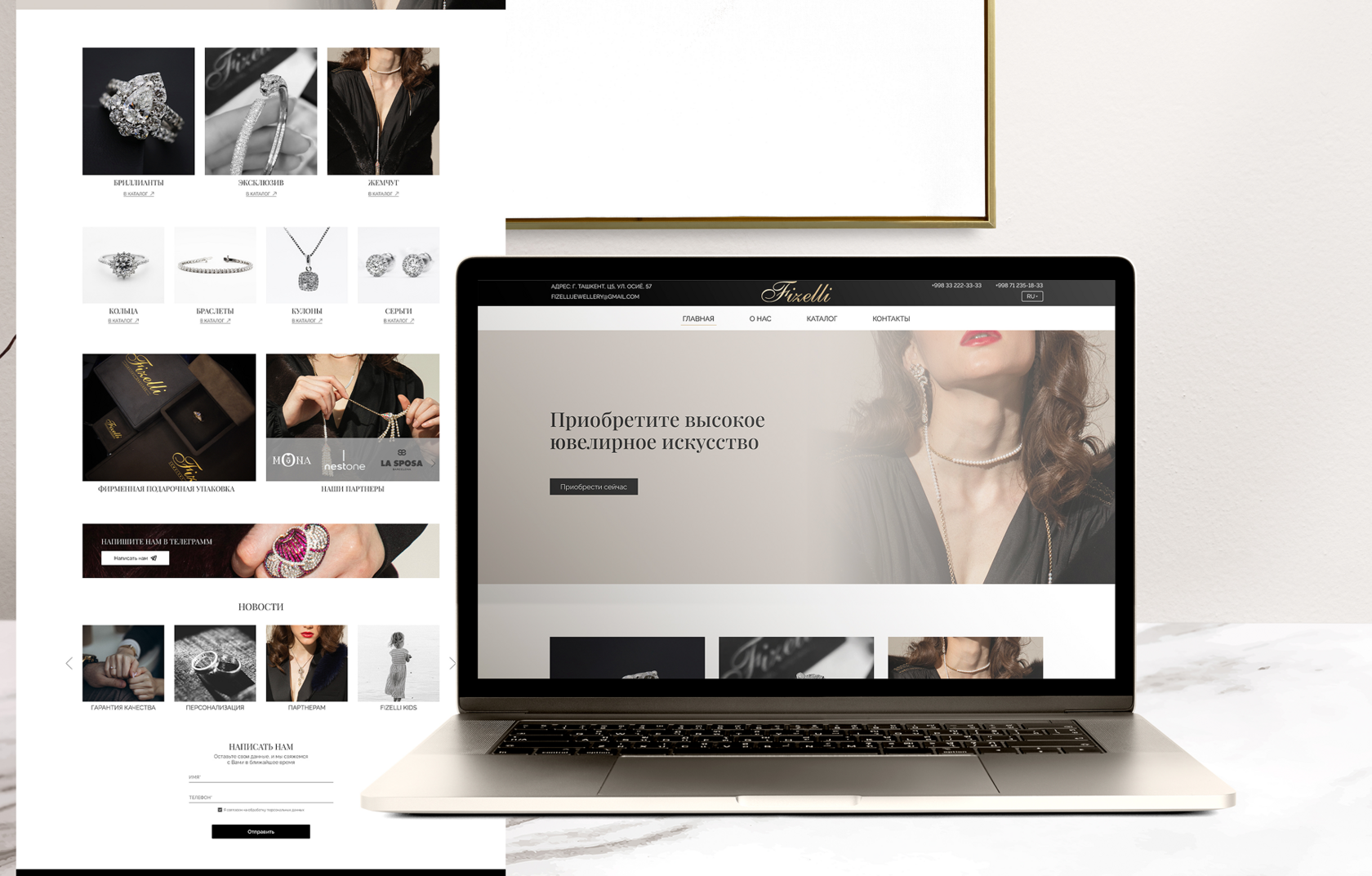 В итоге получился стильный, лёгкий и информативный сайт, который подчёркивает высокий статус ювелирного бренда Fizelli и способствует увеличению онлайн-продаж. Такой сайт помогает бренду выделиться на рынке и привлекать целевую аудиторию с первых секунд знакомства.